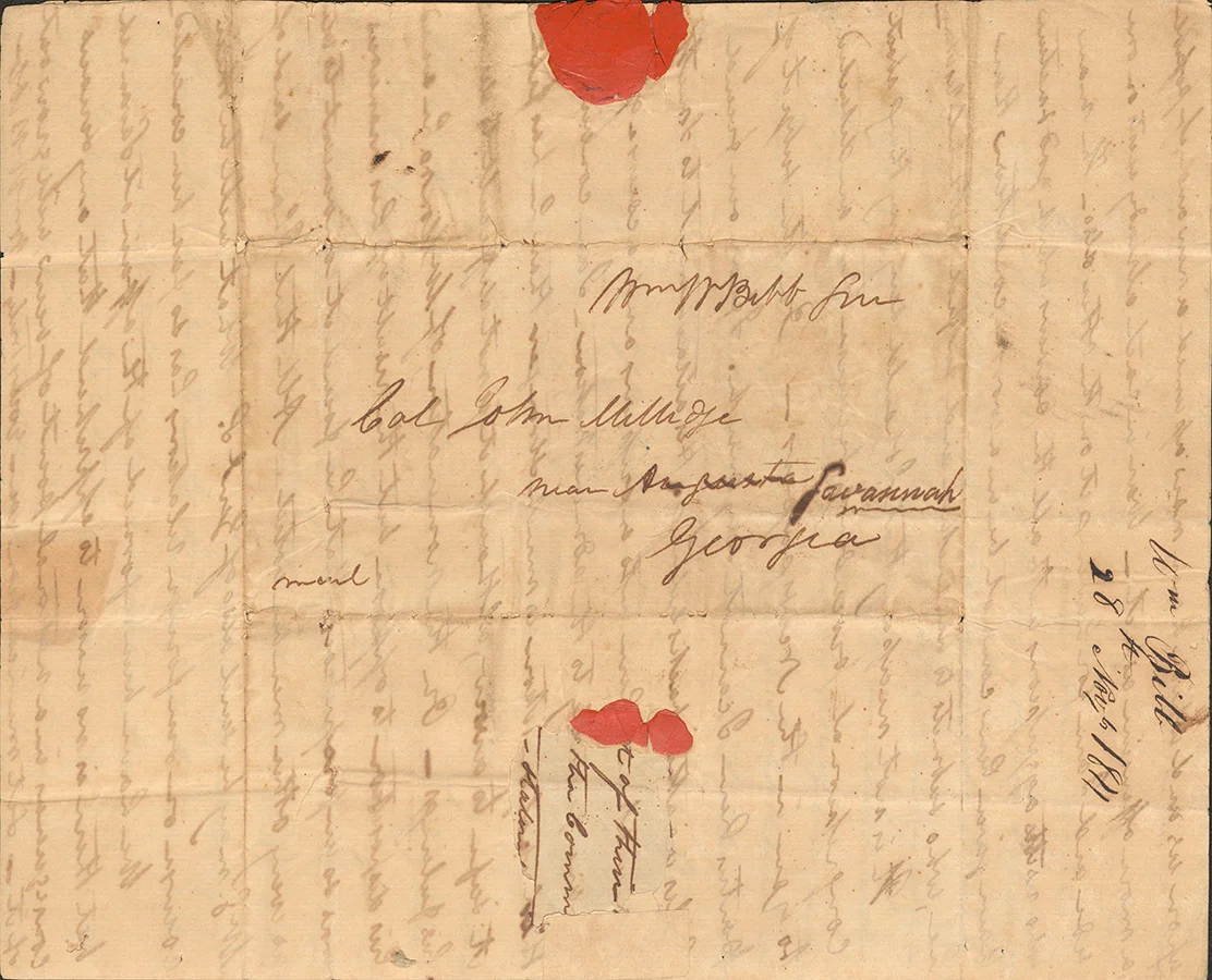 In the winter of 1811 in Washington D.C., a 30-year-old member of the U.S. House of Representatives from Georgia, William Wyatt Bibb, wrote to a friend back home about the deteriorating relations between the United States and Great Britain. Considered by some at the time to be a “war hawk”, a group of aggressive, young congressmen, who advocated for the War of 1812 against Great Britain, Bibb expressed in the letter his beliefs in a strong national defense against the British.